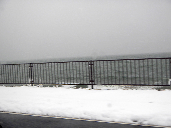 せっかくなので琵琶湖沿いに大津方面へ向かい走りましたがどんどん吹雪が酷くなり 琵琶湖の景色が全く見れませんでした。