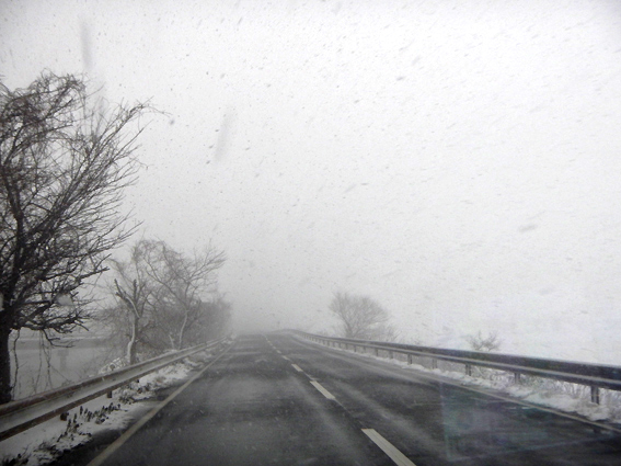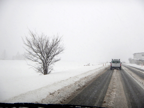 時々ホワイトアウト状態になった時もあり運転が大変。やれやれ。