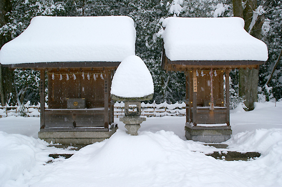 【左竃(かまど)神社(末社)】:家内安全 / 【右年神神社(末社)】:五穀豊穣