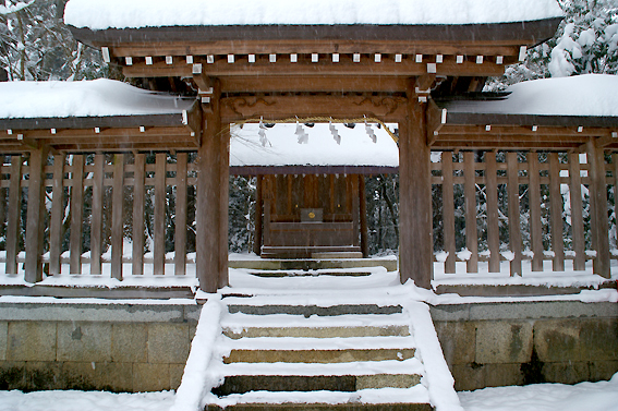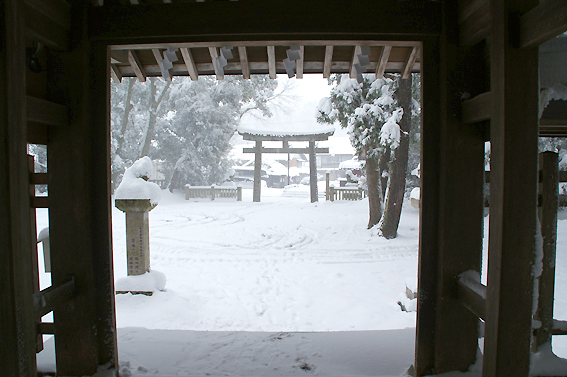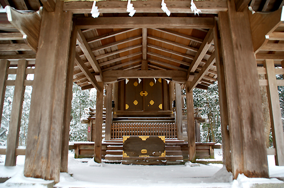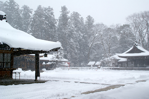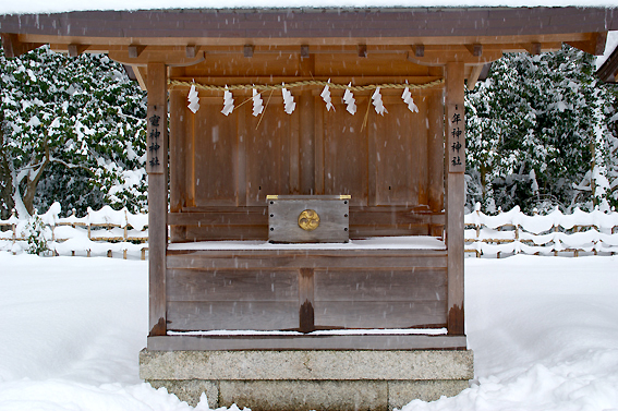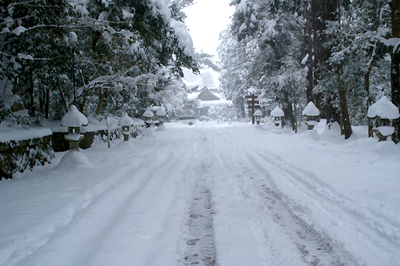 では、最後にもう一度御神門前まで行き拝殿を撮っておきますか。次回来る時は雪が無い時にしよう。