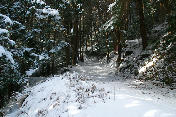 雪道は歩き辛い。一歩踏み込んでは半歩下がる感じで時間と体力が奪われる。