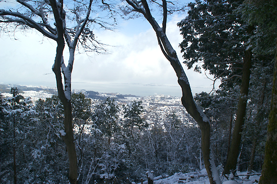 この山は八王子山で、標高381mだそうです。ここがその登山口で、奥宮まで約1㎞。 片道約30分だそうですが、雪が積もってるためさらに時間がかかりそうです。