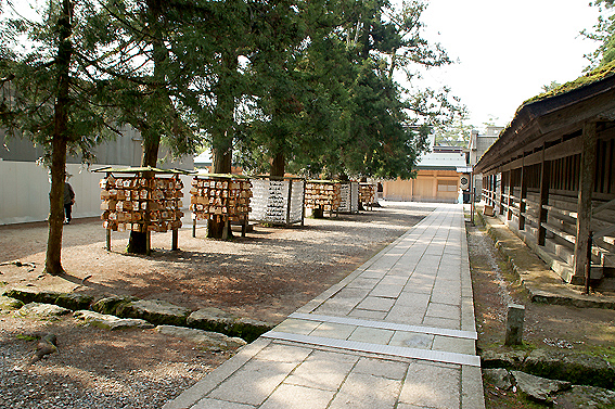 神楽殿の裏側に行ってみましょう。裏手にも社はあります。