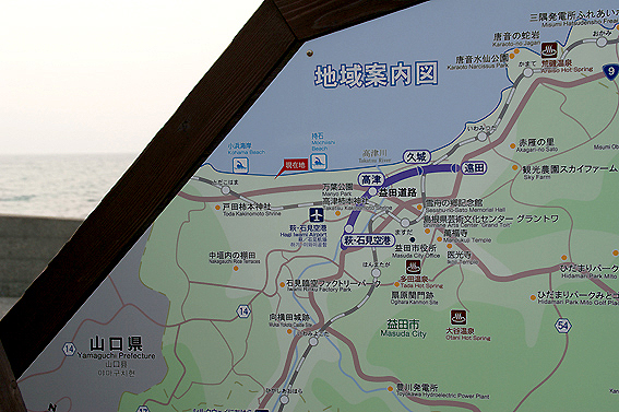 そして、6時間半くらい走ってようやく島根と山口の境界線付近まで来ました。ここで、休憩です。