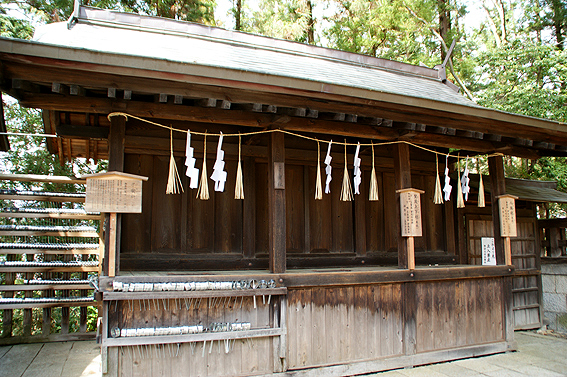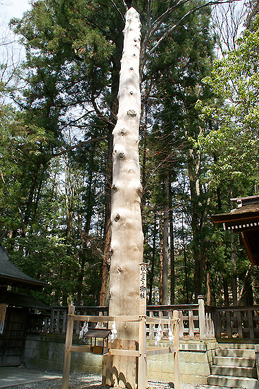 右側には一の御柱が。ここは三と四の御柱は参拝者が入れない場所に建っているそうなので近くでは見れません。 しっかりお参りして御朱印をもらい最後の社へ向かいますよ。