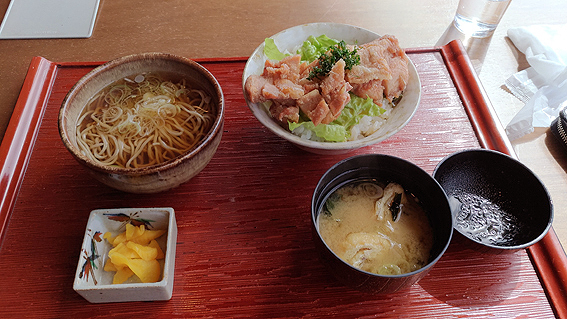 鳥のから揚げ丼・そばセット?だったか忘れましたが頂きます。で、昼飯と休憩を取った後せっかくなので諏訪湖に行ってみましょう。