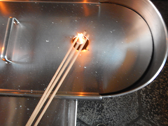 線香に火を点けます。