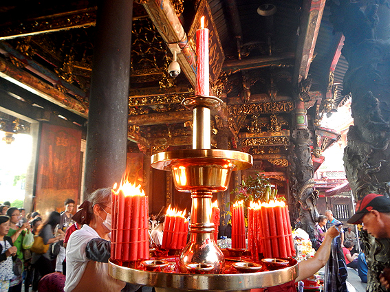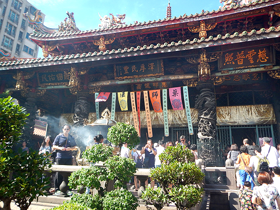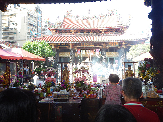 ちなみに、ここには日本でもお馴染みの3体の菩薩が祀られておりその裏側には神様達が祀られています。台湾人達の熱心な信仰ぶりには頭が下がります。