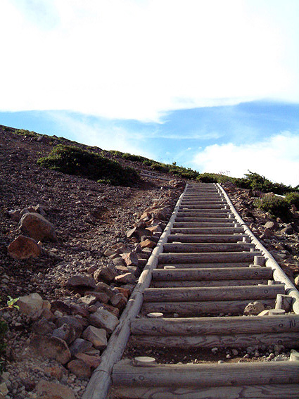 駐車場からこの階段を登り切れば山頂です。簡単。