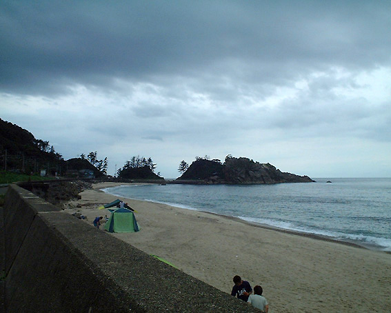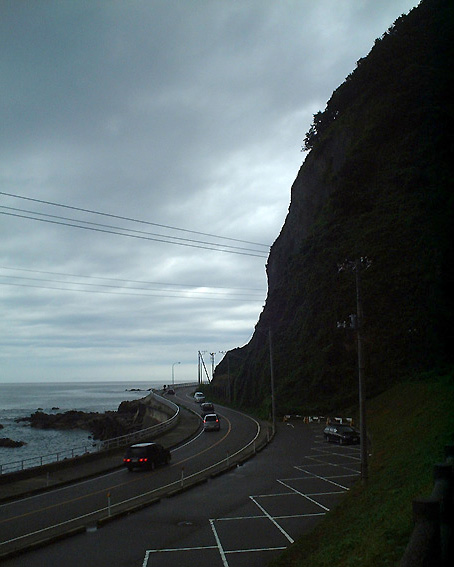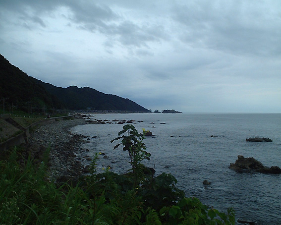 とりあえず、日本海沿いを北上します。こちらはまだ雨が降っていませんが・・・。これから雨来ますよ~。