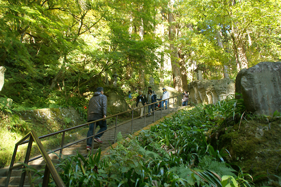 1000段以上の石段を登って上まで向かいますよ。結構急な登りなので年配者はかなり大変そうでした。