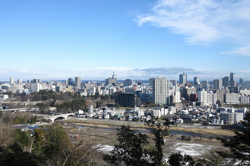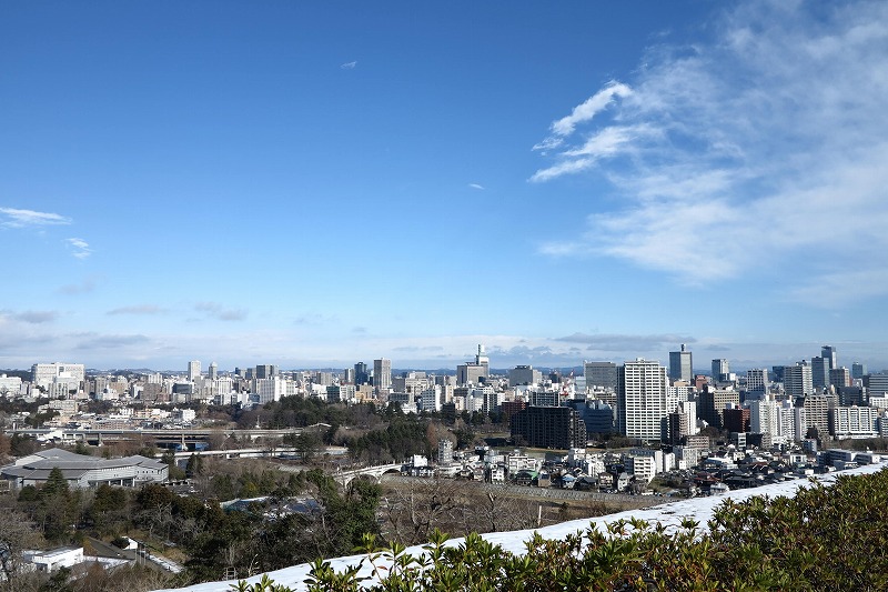 っという事で仙台城跡に到着です。観光客多いな~。 そして景色最高ですね。仙台市一望できます。