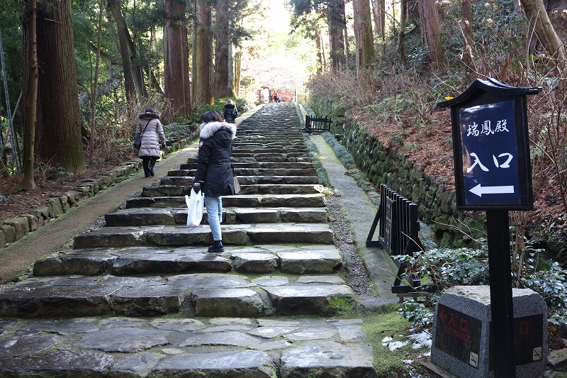 仙台城跡から車で数十分で到着です。次の目的地は瑞鳳殿です。