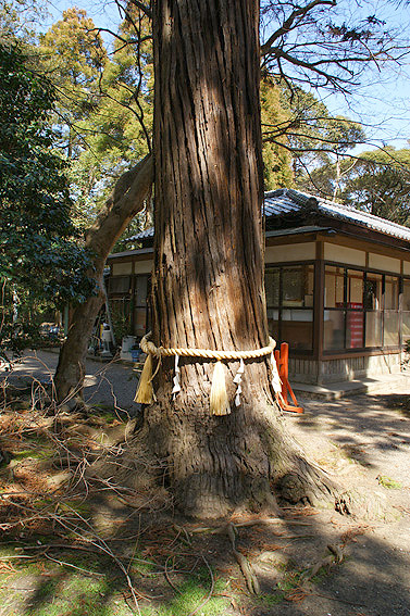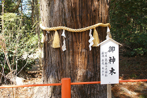 この樹木は立派ですね。しかし、残念な事にしめ縄がビニールで出来てました。
