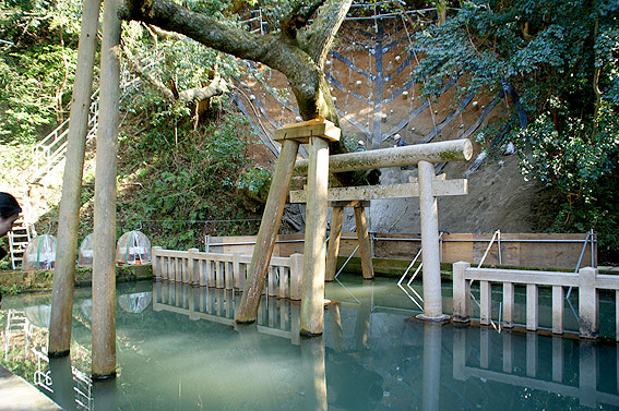 神代に一夜にして湧水し、かんばつでも決して涸れない、大人でも子供でも入ったら水面が胸の辺りにくる、 という不思議な言い伝えがあるそうですよ。この日は残念ながらおもいっきり工事してましたね。