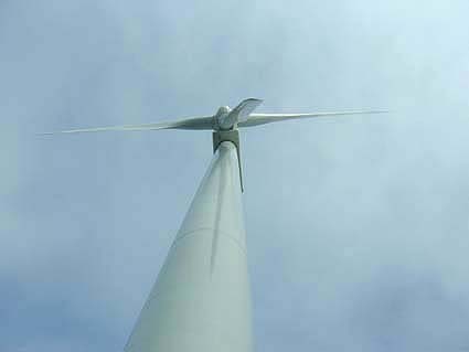 国道から細い細い道をひたすら山頂向かって走る事30分位で大星山山頂へ到着しました。 車を降りて上を向いたらビックリするくらい大きな風車が頭上を回っていました。
