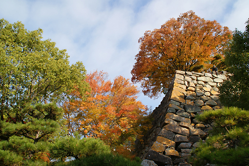紅葉が綺麗ですね~。石垣綺麗に積み重ねてますよね。機械が無い時代にこれだけの物作るんですから昔の人は凄いな~。