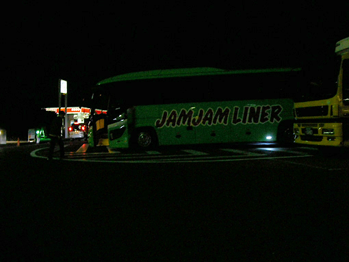 PM9時、新宿西口にて、夜行バスでの出発です。金曜の夜ともあってバスの乗車率100%