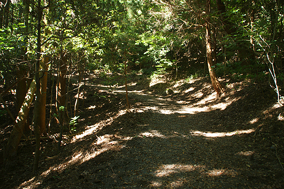で、この山道をさらに行くと嵩山山頂にも続いている様ですが山頂へはバイクで行くので 鳥居まで戻ることにしました。
