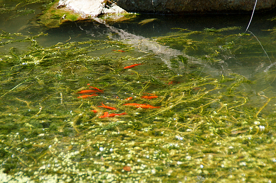 おー池の中には金魚?鯉?が沢山。