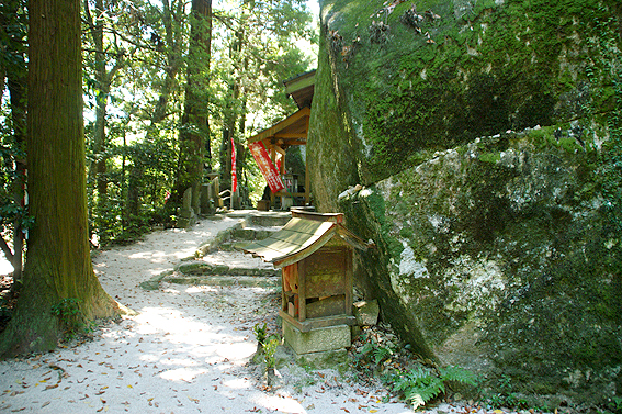 観音堂の左側にある大きな岩は女岩です。その奥に子安地蔵が祀られています。