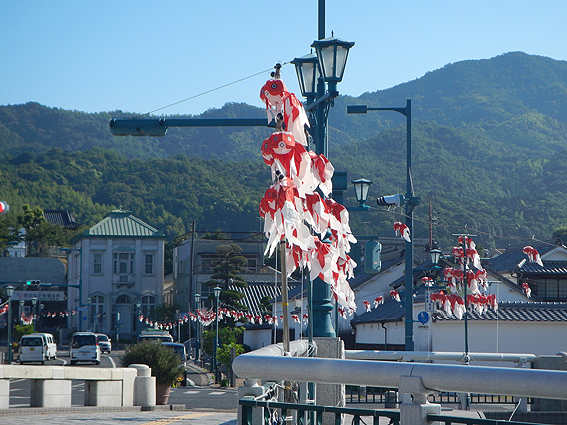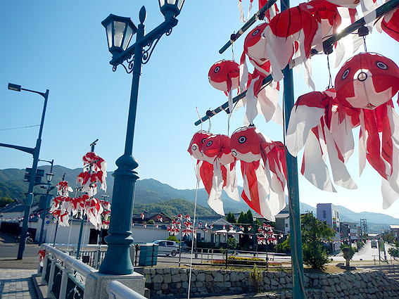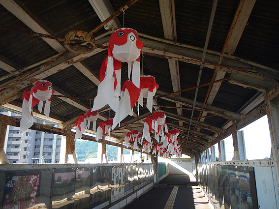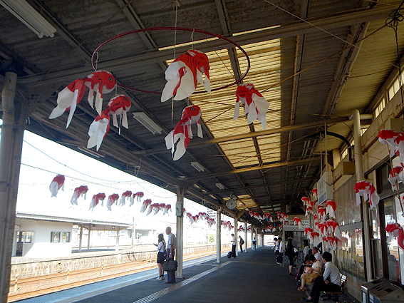 そして、柳井駅に到着。お~、金魚ちょうちんが沢山飾られてますね。