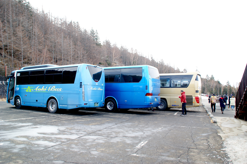 観光バス多い。大沢駐車場って狭いな~売店もショボい。
