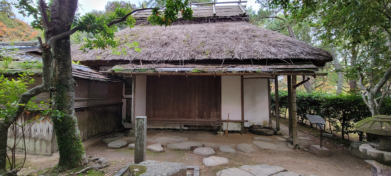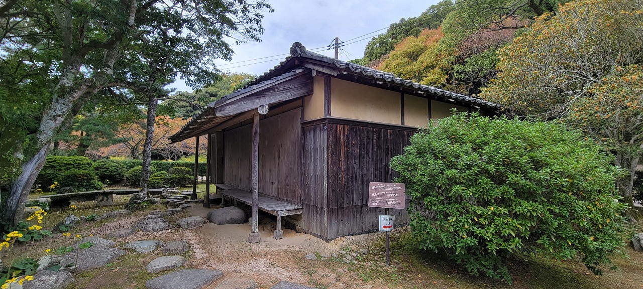 東郊、中津江にあった萩藩寄組士梨羽家の別邸茶室で、 年末の城内すす払いの際、藩主が一時休憩したことからこの名があります。 茶室としても江戸時代中期の花月楼形式の優れたものだそうです。