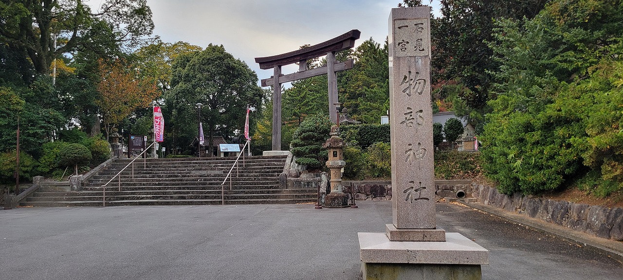 到着です。本日一発目はここ物部神社です。車を止めてご挨拶に行きましょう。