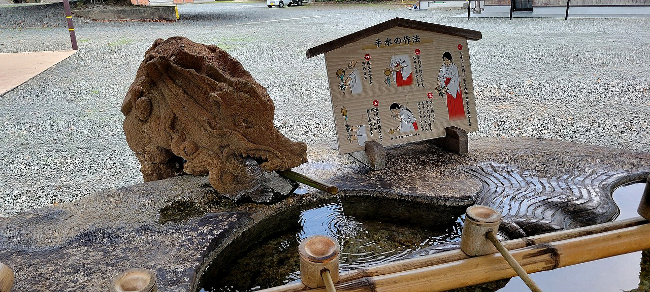 富金石という砂金を含んだ石で造った手水舎だそうです。浄・勝・財・健・徳のご利益がある 勾玉が掘られいて触ると御神徳があるとか。