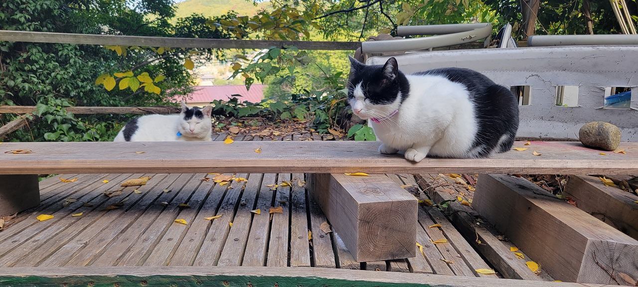 下山途中にねこ神社なるものがあったので入ってみました。いきなり猫達が・・・ 寝てる。