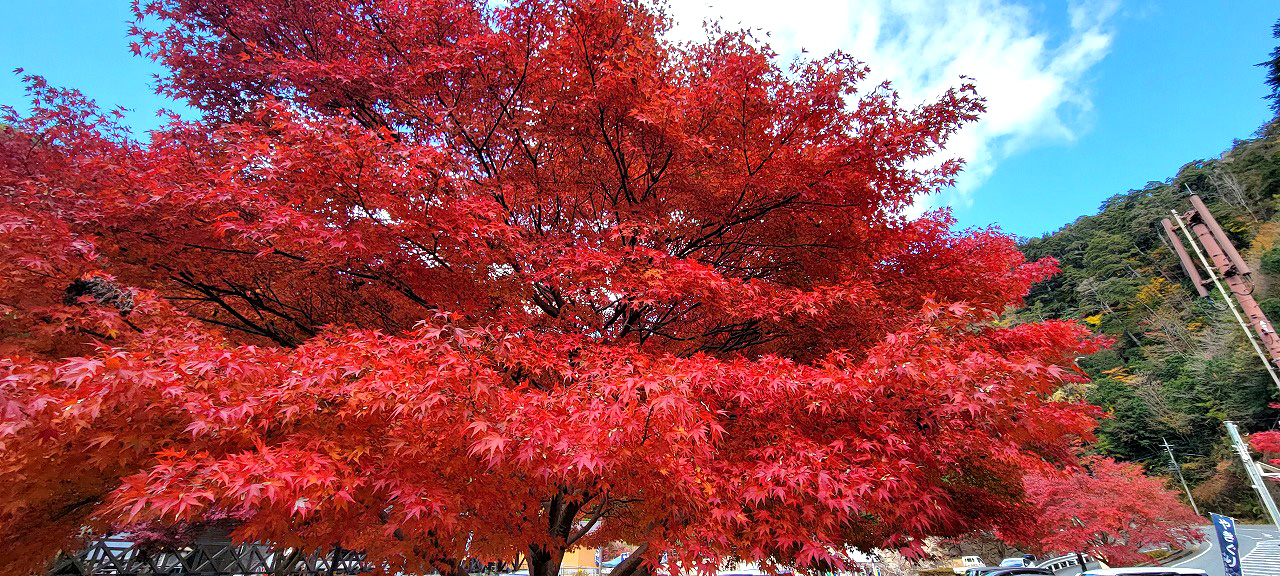次の目的地へ向かう途中トイレ休憩で立ち寄った「スパ羅漢 福祉健康増進保養センター」 でしたが見事に真っ赤に染まった紅葉。